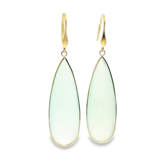 Green Chalcedony Hoop Earring 14k Yellow Gold