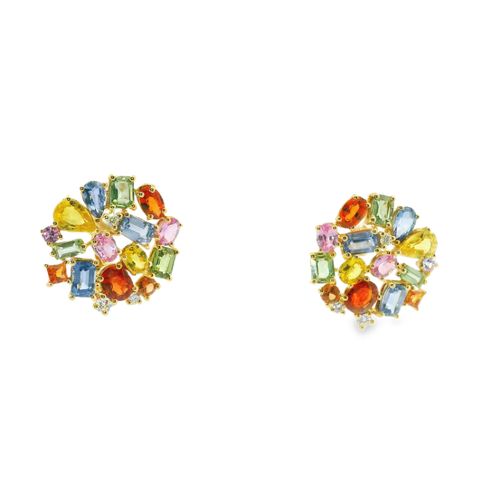 0.17CT Diamond 7.85CT Multi Sapphire 14k Yellow Gold Earring