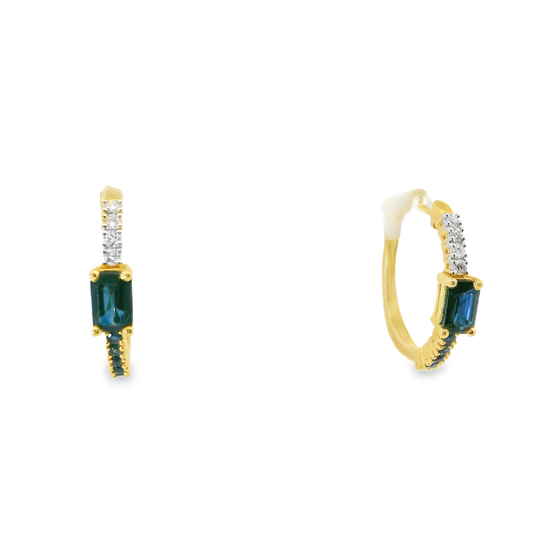 0.07CT Diamond Hoop Blue Sapphire Earring 14k Yellow Gold