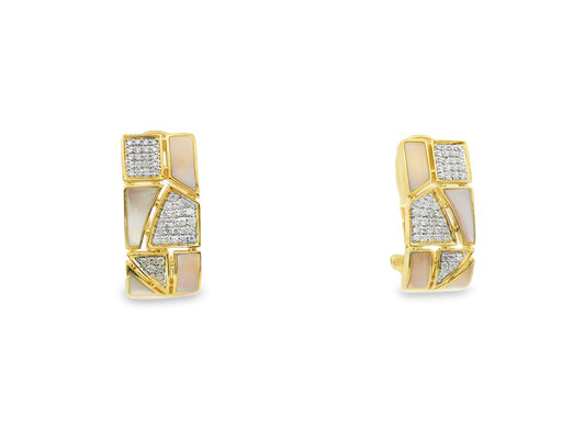0.34CT Diamond with White Shell 14k Yellow Gold Earring