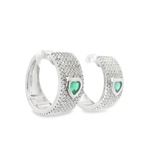 0.33CT Diamond 0.08CT Emerald 18k White Gold Earring