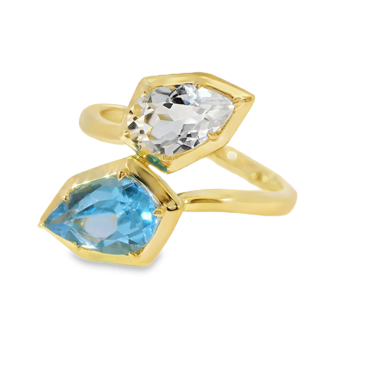 1.52CT Blue and 0.87CT White Topaz Ring 14K Yellow Gold
