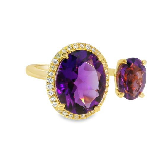 0.12CT Diamond & 0.32CT Amethyst Ring 14k Yellow Gold