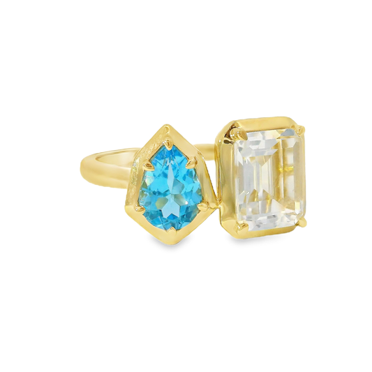 0.73CT Blue Topaz and 1.89CT White Topaz Ring 14 Yellow Gold