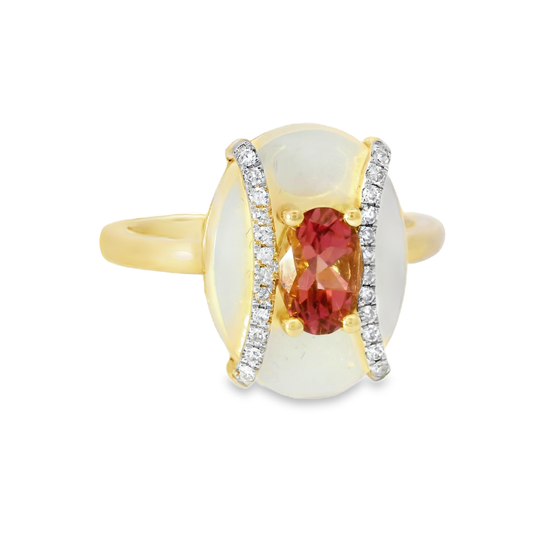 0.09CT Diamond and 0.50CT Pink Sapphire with White Agate 14K Yellow Gold