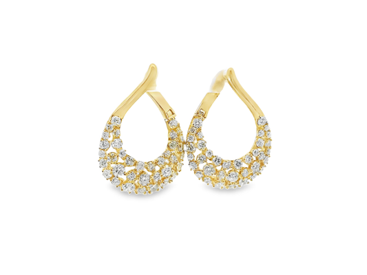 2.06 CT Round Cut Diamond Fancy Hoop Earring 14k Yellow Gold