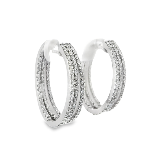 0.71CT Diamond Hoop Earrings 14k White Gold