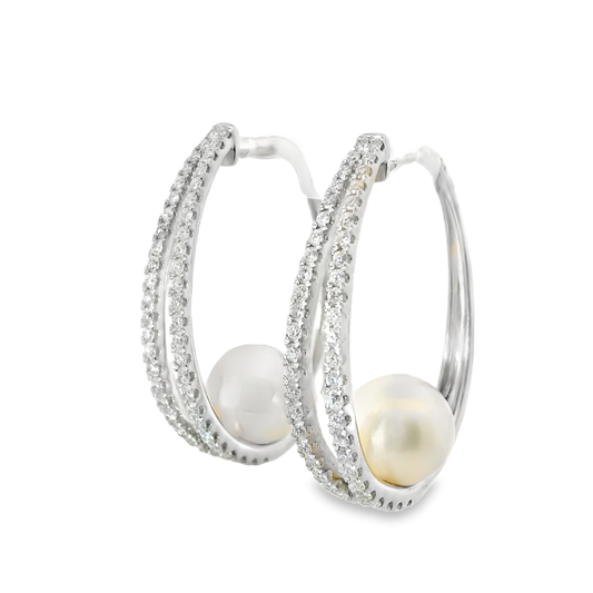 1.28CT Diamond and Pearl 14k White Gold Earring