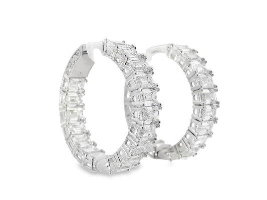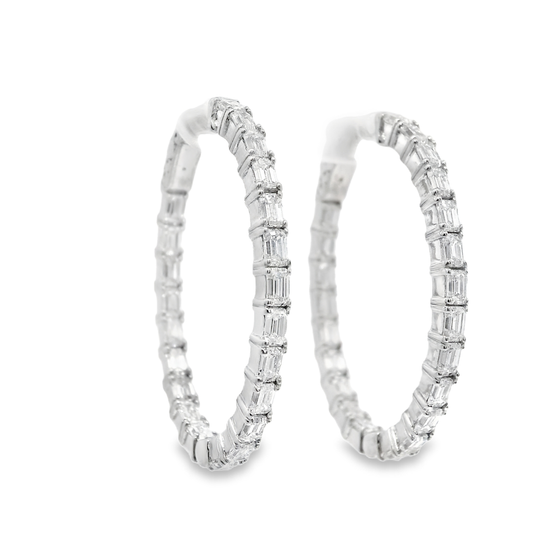 3.79CT Diamond Lab Emerald Cut Hoop Earring 14k White Gold