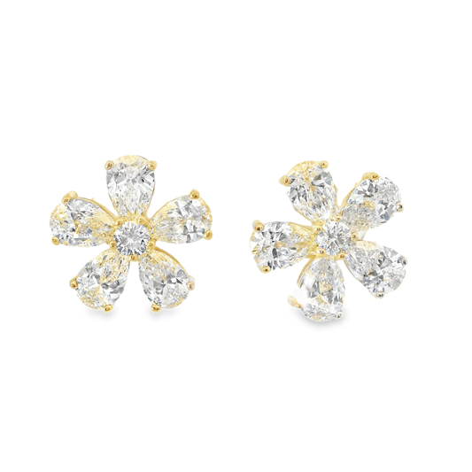 1.04Ct Round 0.75CT Pear Shape Lab Diamond Earrings 14k Yellow Gold
