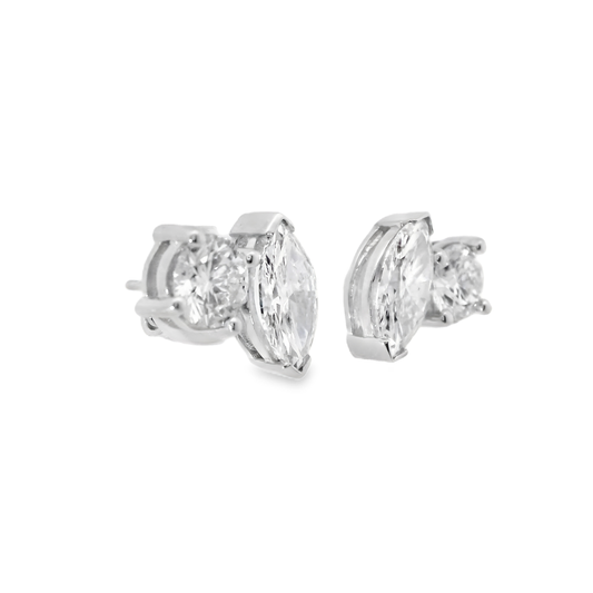 0.65CT Round 1.84CT Marquise Lab Diamond Earring 14k White Gold