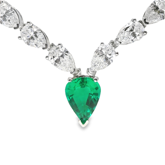 28.25CT Pear Shape Lab Diamond 1.85CT Emerald 14k White Gold