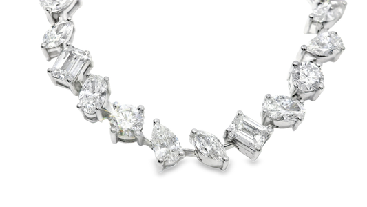 24.57CT Diamond Mixed Shape Tennis Necklace 14k White Gold Lab