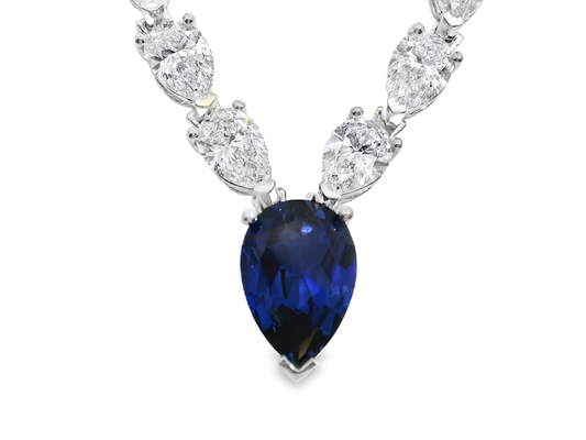 19.69CT Small Lab Pear Shape Diamond 1.89CT Center Pear Shape Lab Diamond Necklace 14k White Gold