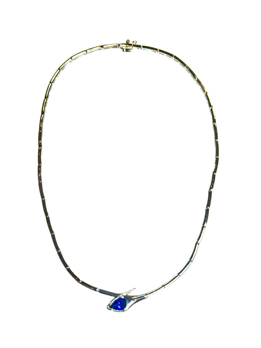 4.80CT Lab Diamond 2.90CT Multi Sapphire Necklace 14k White Gold
