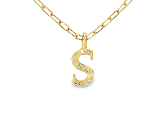 0.15CT Diamond S Letter Pendant 18k Yellow Gold