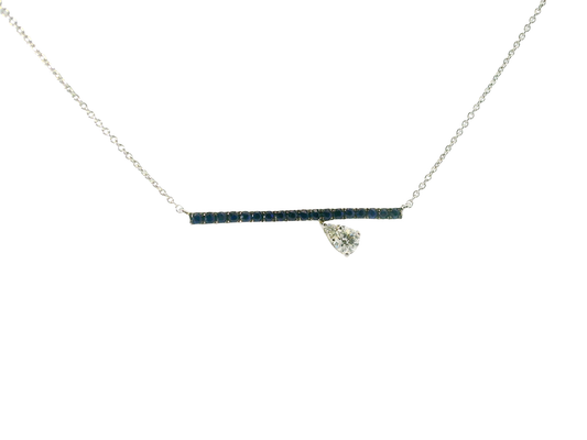 0.66CT Diamond 0.68CT Blue Sapphire 14k White Gold Pendant
