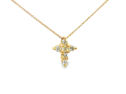 1.02CT Diamond Cross Pendant 14k Yellow Gold