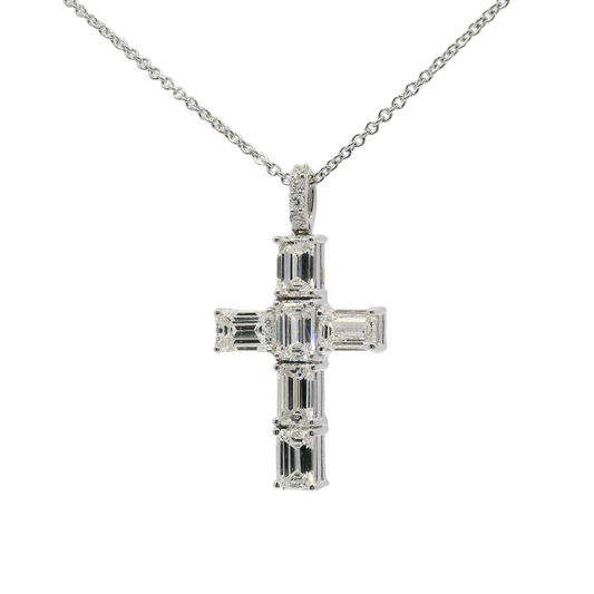 5.98CT Lab Diamond Emerald Cut Cross Pendant 14k Gold
