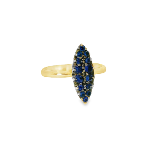 0.05CT Diamond and 0.60CT Blue Sapphire Ring 18K Yellow Gold