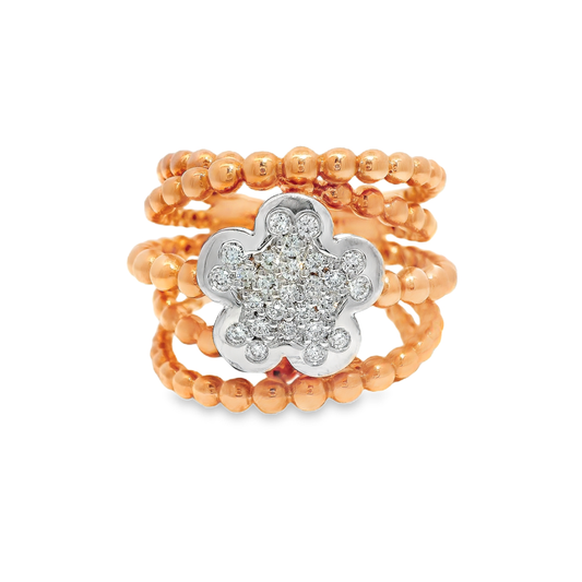 0.28CT Diamond Flower Ring 18K Rose Gold