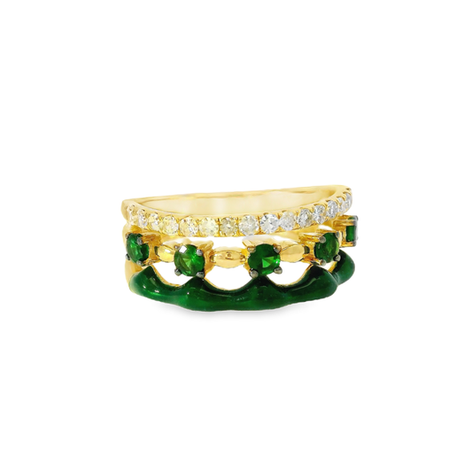 0.24Ct Diamond and 0.44CT Green Garnet with Green Enamel 14K Yellow Gold