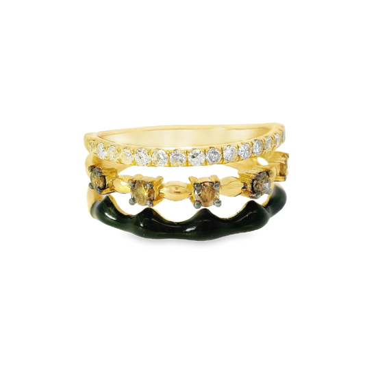 0.29CT White and Brown Diamonds with Black Enamel Ring 14K Yellow Gold