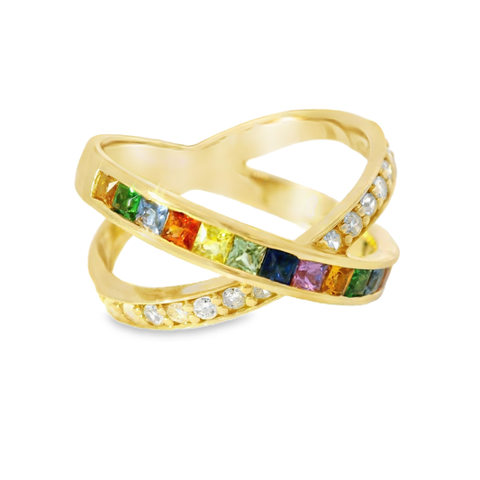 0.22CT Diamond and 0.93CT Mixed Sapphire Gemstone Ring 14K Yellow Gold