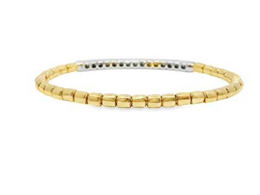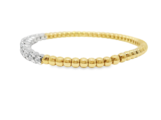 0.31CT Diamond ID Plain Beads Stretch Bangle 14k Yellow Gold