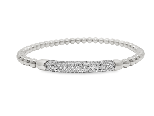 0.50CT Diamond ID Plain Beads Stretch Bangle 14k White Gold