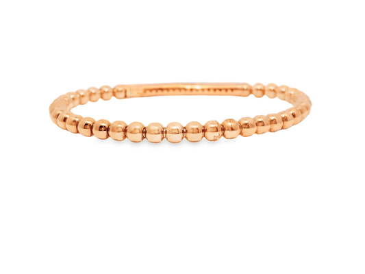 0.22CT Diamond ID Plain Beads Stretch Bangle 14k Rose Gold