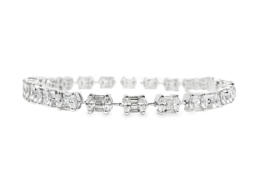 5.05CT Diamond Multi Shape Bracelet 18k White Gold
