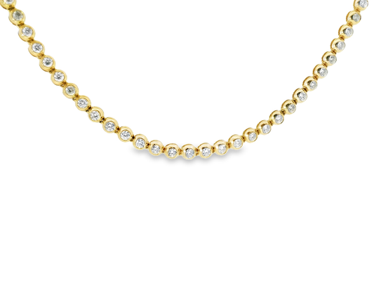 5.31CT Round Cut Bezel Diamond Tennis Necklace 14K Yellow Gold