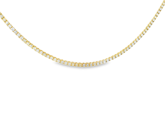 4.30CT Round Cut Diamond 4 Prong Tennis Necklace 14K Yellow Gold
