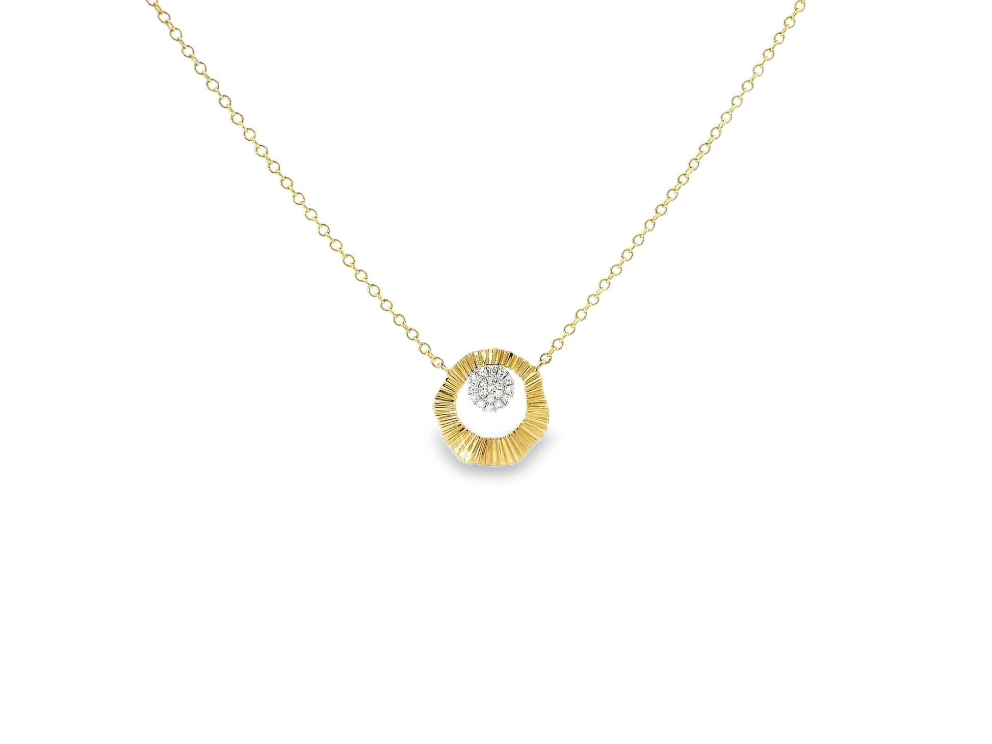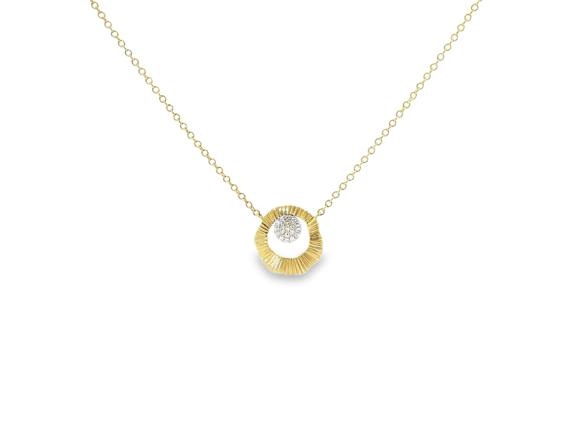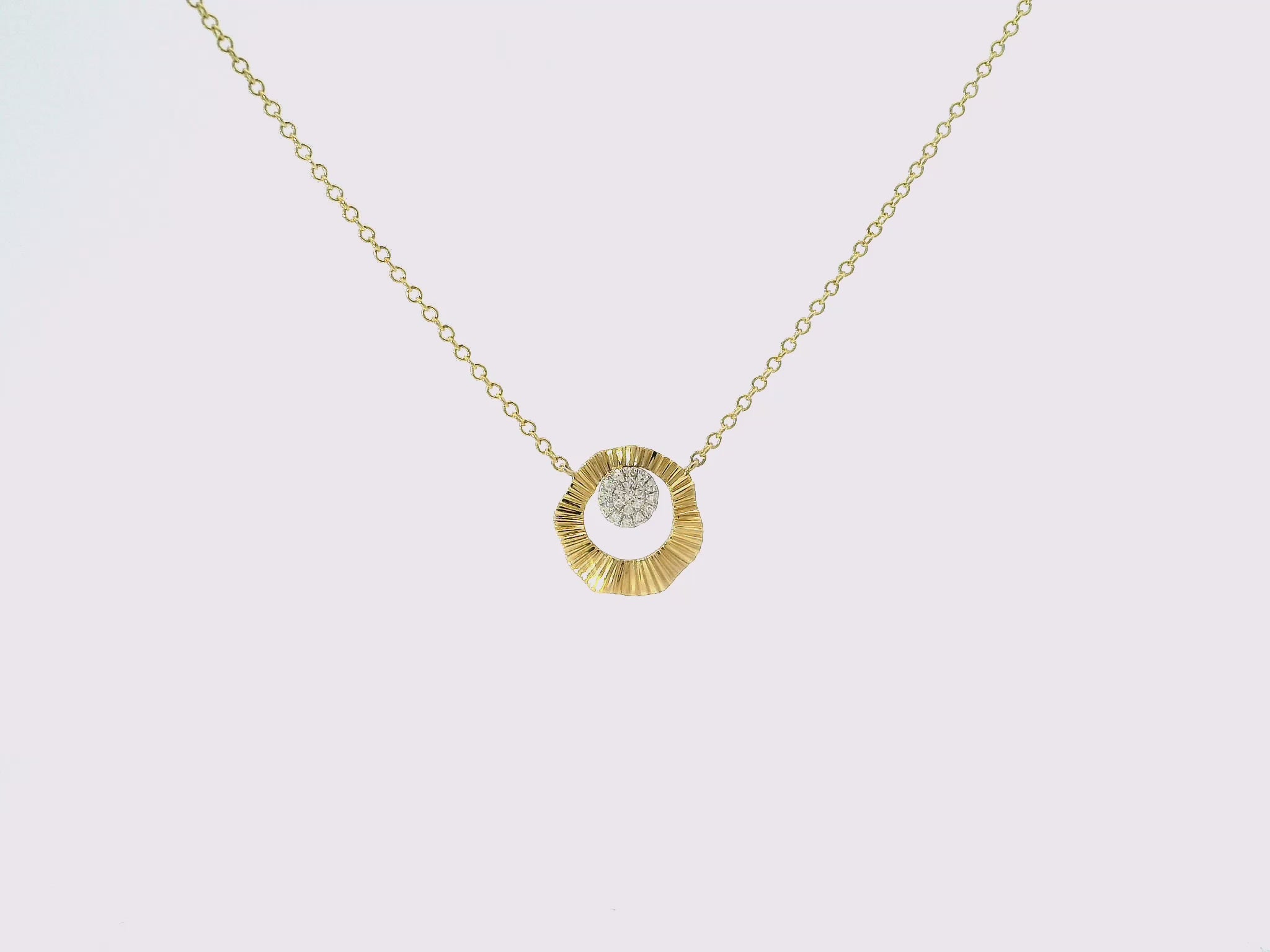 This 0.06CT diamond pendant is crafted in 14k gold, a highly durable and luxurious material. Adorned with a sparkling diamond, this pendant is a timeless piece of jewelry that adds elegance to any outfit. Perfect for any occasion, this pendant is a must-have for any accessory collection.