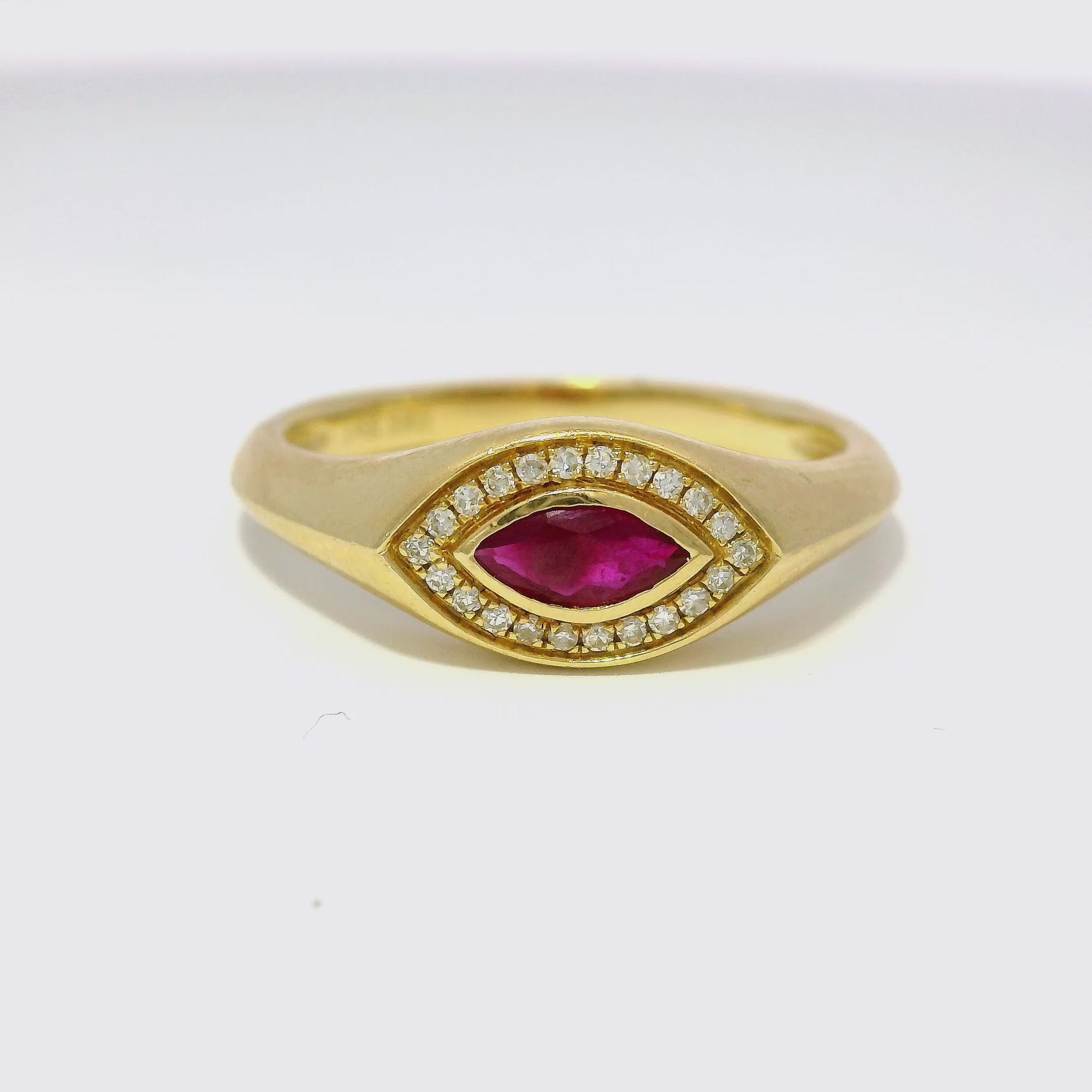 This elegant 14k Yellow Gold ring features a stunning 0.08CT Diamond and a dazzling 0.25CT Ruby. Perfect for adding a touch of sophistication and luxury to any outfit. Made from high-quality materials, this ring is a must-have for any jewelry collection.