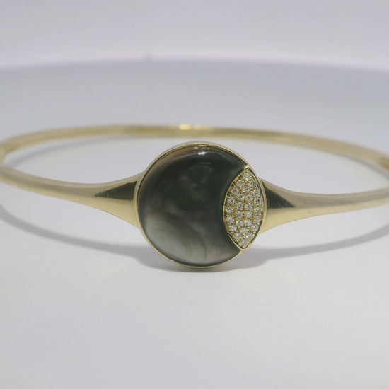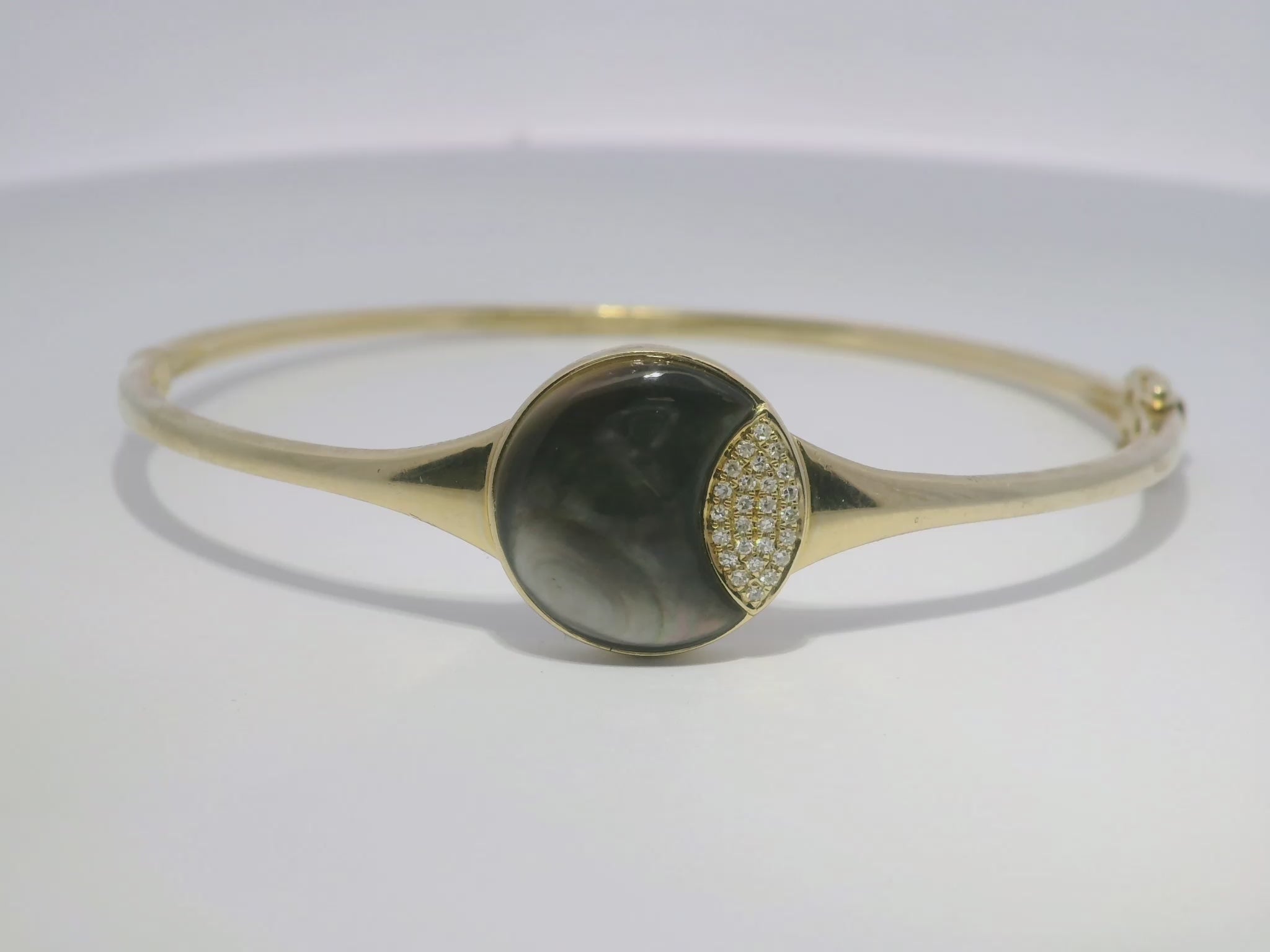 0.08Ct Diamond 3.54Ct Black Mother of Pearl Bangle 14k Yellow Gold