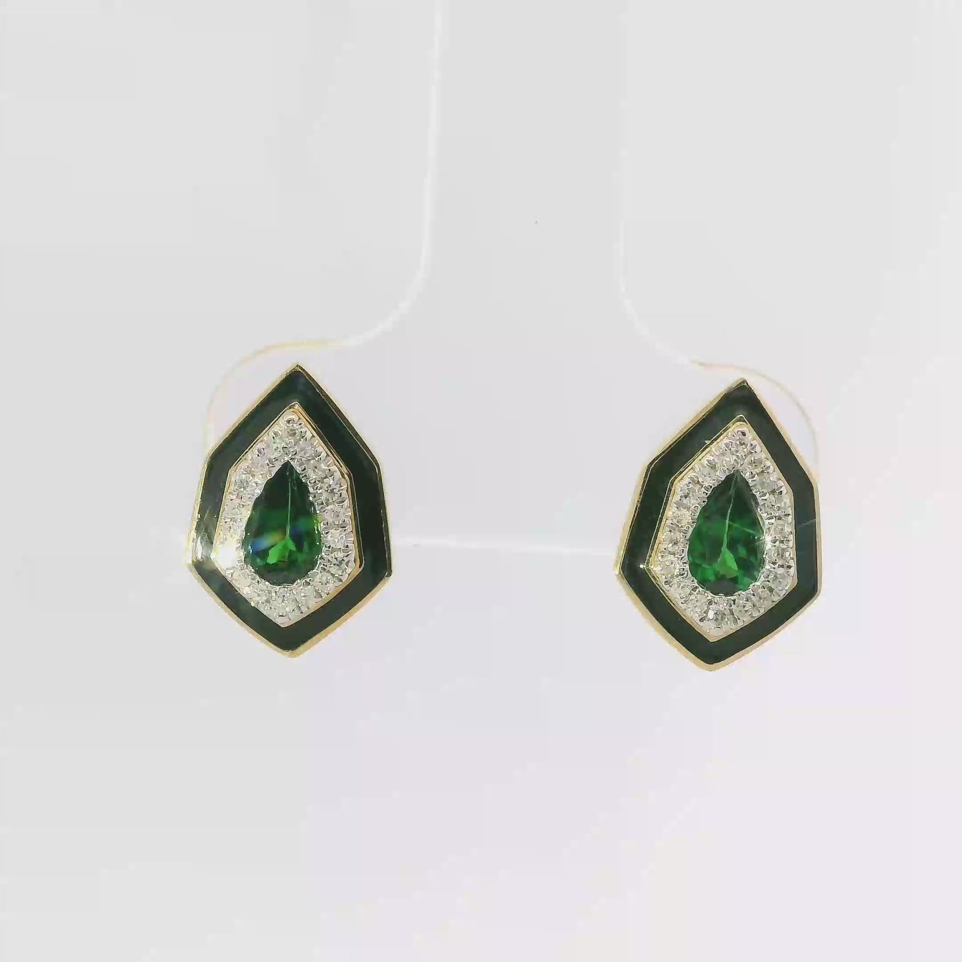Elevate your collection with these expertly crafted 14k yellow gold earrings, featuring a brilliant 0.10 carat diamond paired with a vibrant 0.41 carat emerald. The combination of precious stones offers a refined balance of sparkle and rich color, perfect for adding a touch of sophistication to any ensemble. Designed for durability and timeless elegance, these earrings are an excellent choice for those seeking quality and style in one exquisite piece.