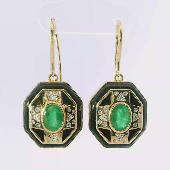 Elevate your collection with these expertly crafted 14k yellow gold earrings featuring a stunning 1.50-carat emerald centerpiece complemented by a 0.10-carat diamond accent. The rich green hue of the emeralds is enhanced by the warm gold setting, while the diamonds add subtle brilliance, creating a refined and timeless accessory suitable for both everyday elegance and special occasions.