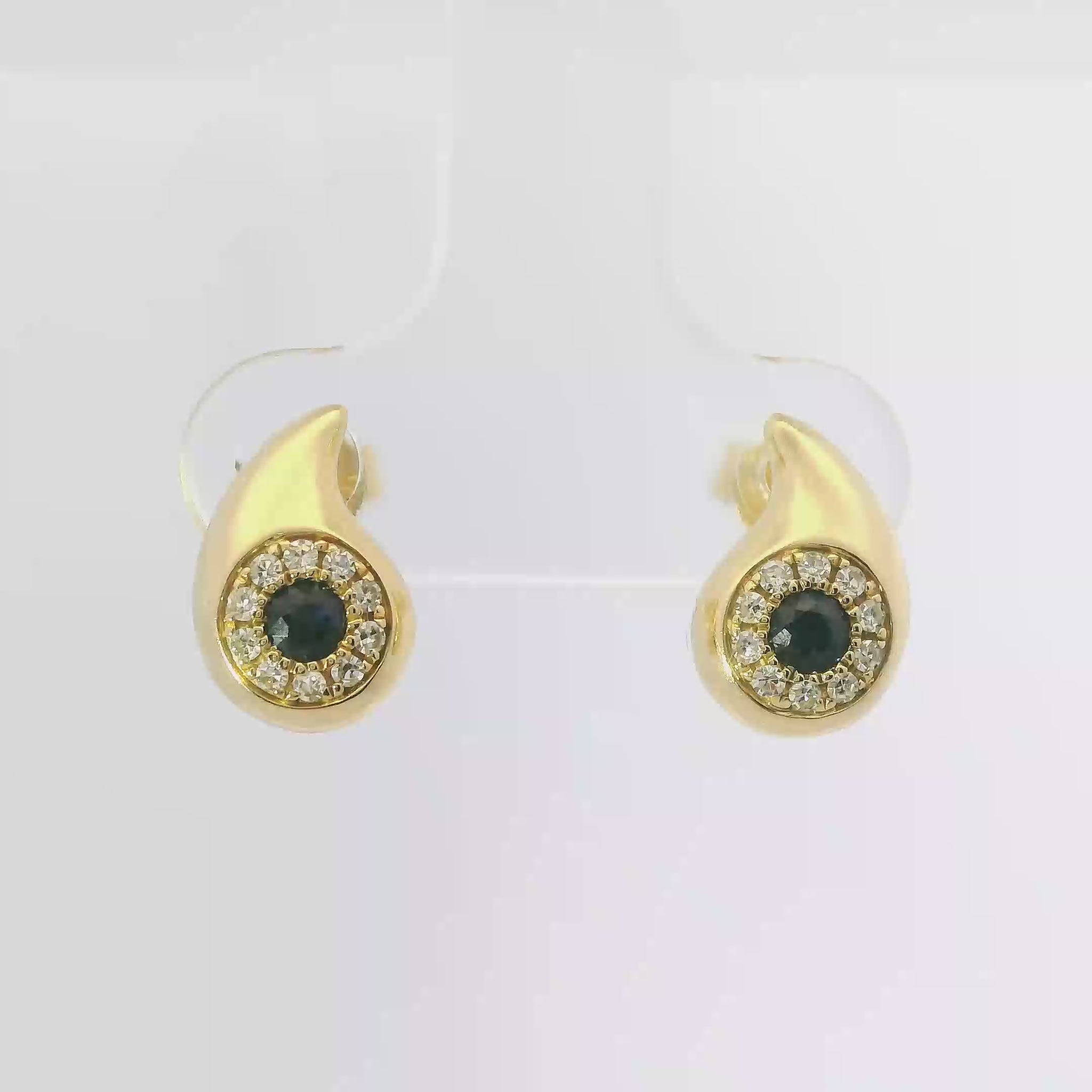 0.12CT Diamond 0.19CT Black Sapphire 14k Yellow Gold Earring