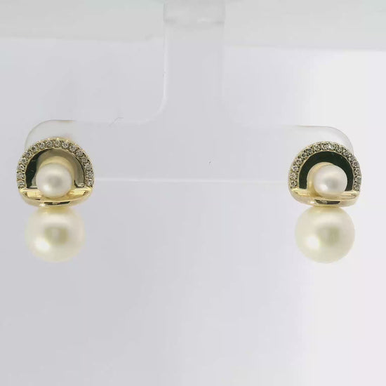 These 0.12-carat diamond earrings combine the timeless elegance of lustrous pearls with the warm glow of 14k yellow gold. Expertly crafted, they offer a refined balance of sparkle and sophistication, making them an ideal choice for both everyday wear and special occasions. The diamonds add subtle brilliance, enhancing the classic beauty of the pearls while ensuring durability and lasting shine.
