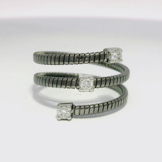 This 0.15CT Diamond Ring in Black Rhodium and 14K White Gold is a stunning addition to any jewelry collection. The unique black rhodium plating adds a touch of sophistication, while the high quality 14K white gold setting creates a durable and beautiful piece. With 0.15 carats of sparkling diamonds, this ring is sure to catch the eye and make a statement.