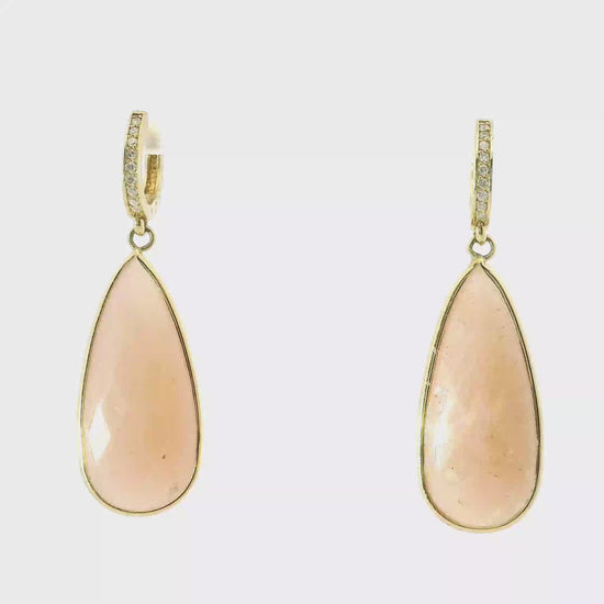 Elevate your elegance with this 0.15CT diamond earring featuring a delicate peach moonstone set in 14k yellow gold. The combination of the diamond’s brilliance and the moonstone’s subtle warmth creates a refined accessory perfect for both everyday wear and special occasions. Expertly crafted, this piece offers lasting quality and timeless sophistication.