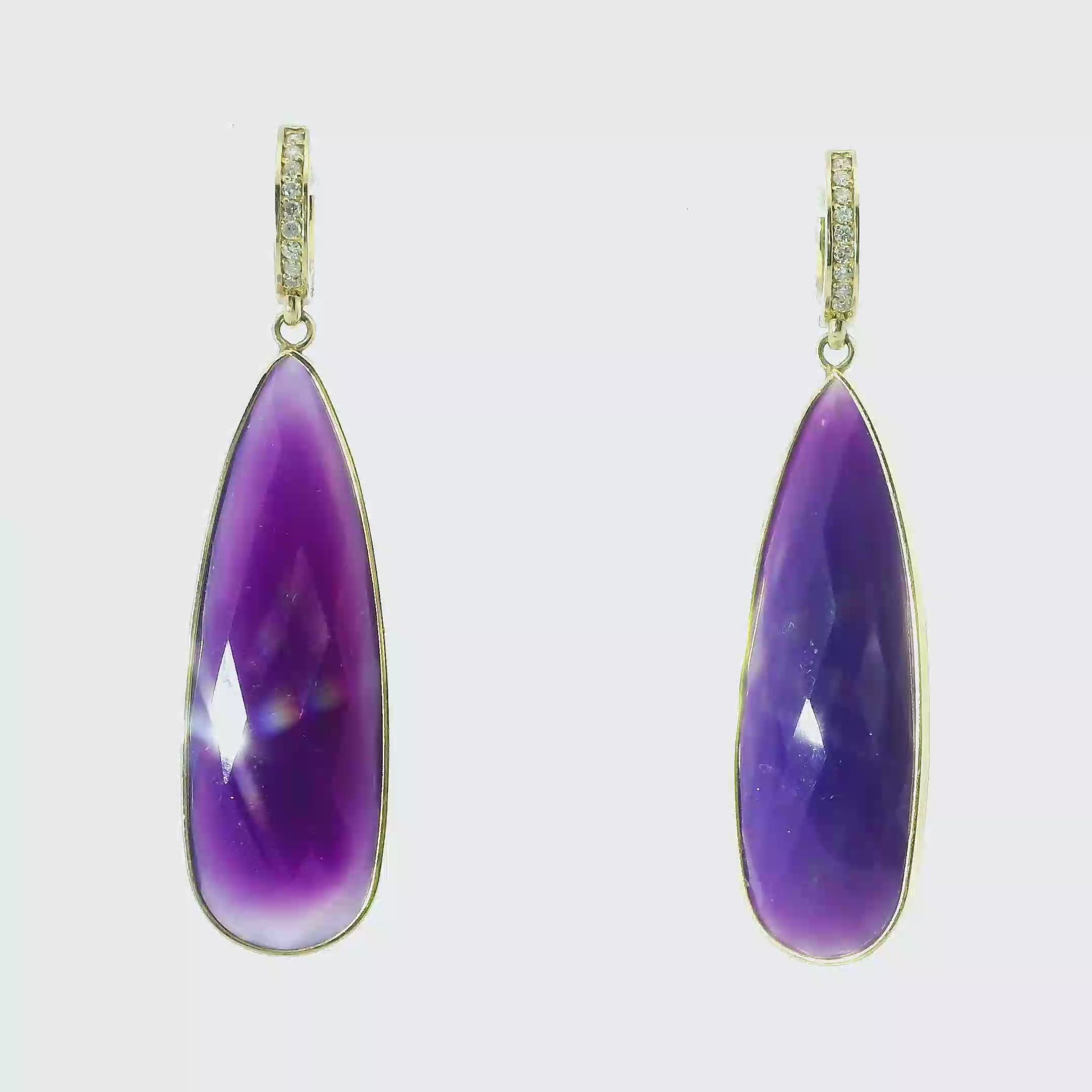 0.15Ct Diamond with Purple Agate 14k Yellow Gold Earring