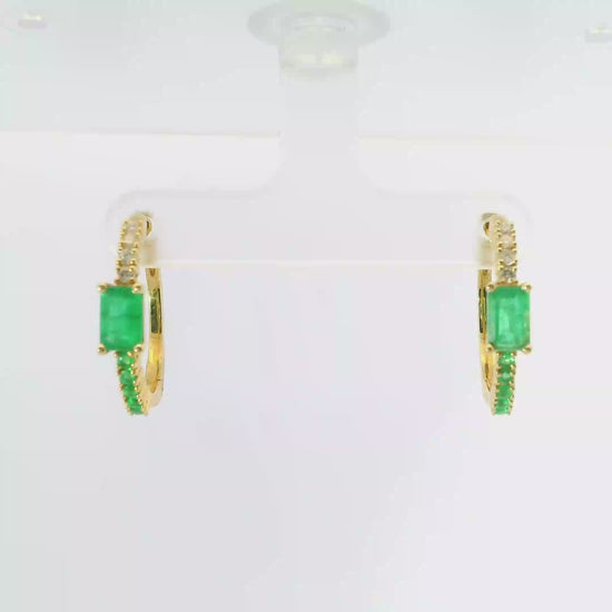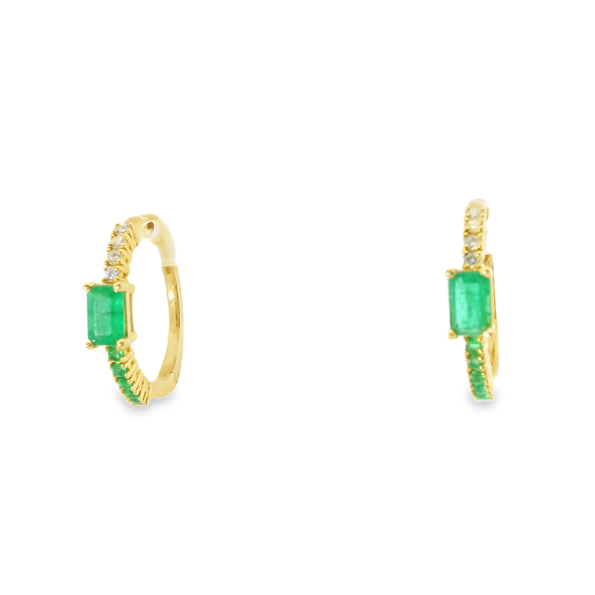 Elevate your elegance with these 14k yellow gold earrings featuring a brilliant 0.16-carat diamond paired with a striking 1.30-carat emerald. Expertly crafted, this combination offers a refined balance of sparkle and vibrant color, perfect for adding a sophisticated touch to any ensemble.