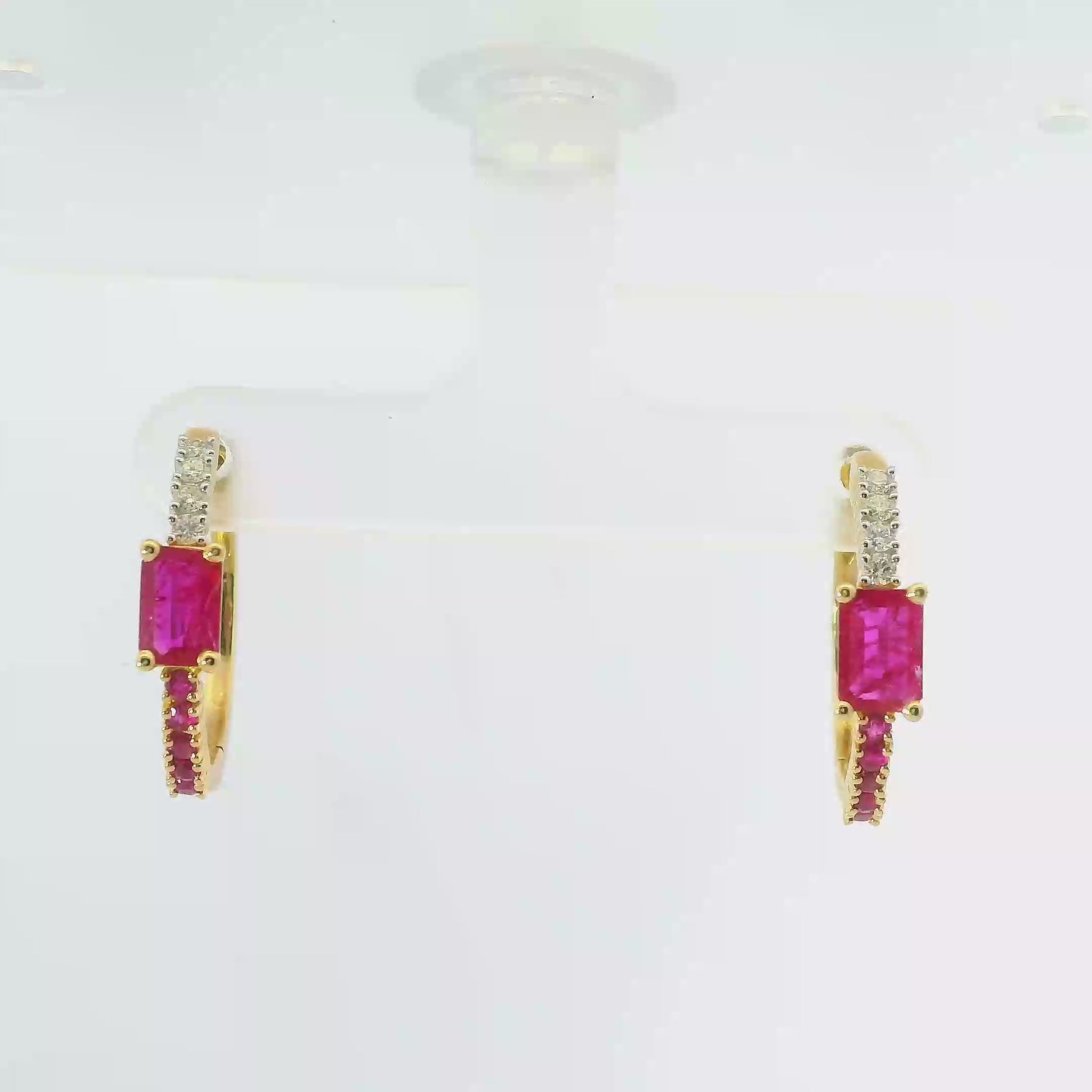 0.16Ct Diamond with 1.45CT Ruby 14k Yellow gold Earring