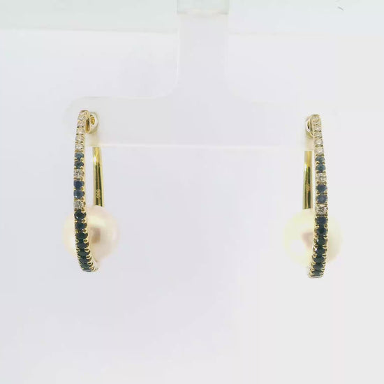 Elevate your elegance with these 0.16CT diamond and blue sapphire earrings, set in lustrous 14k white gold. Each earring features a delicate pearl that complements the vibrant blue sapphire and sparkling diamonds, creating a refined balance of color and brilliance. Perfect for sophisticated occasions, these earrings offer timeless beauty and expert craftsmanship.