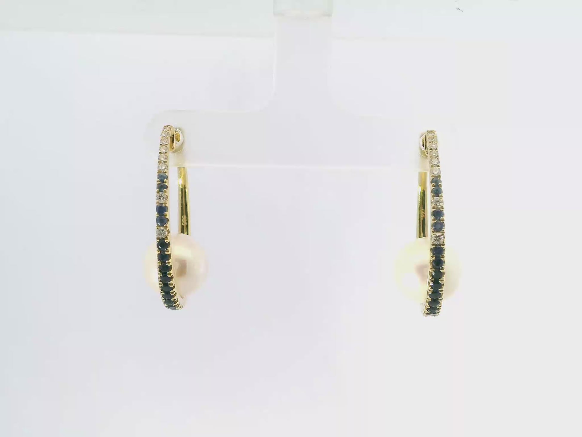 0.16CT Diamond with Blue Sapphire 14k White Gold Pearl Earring