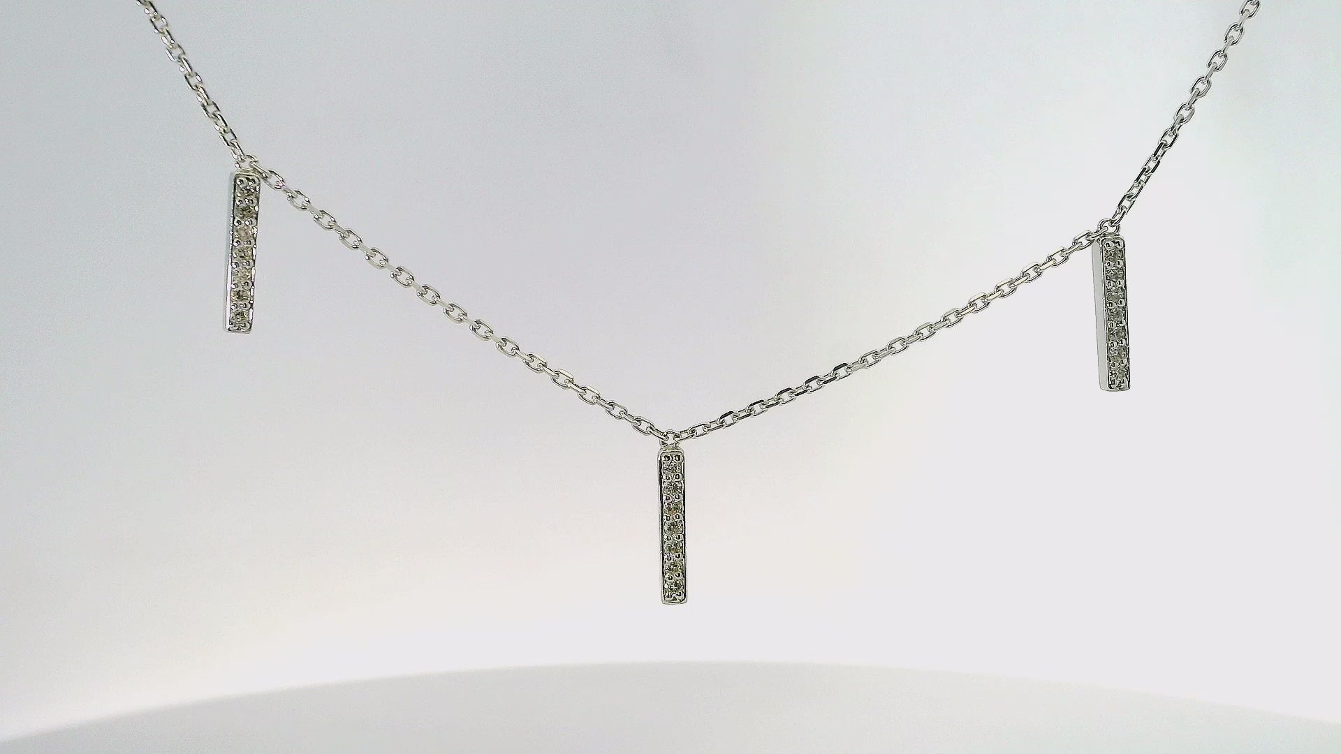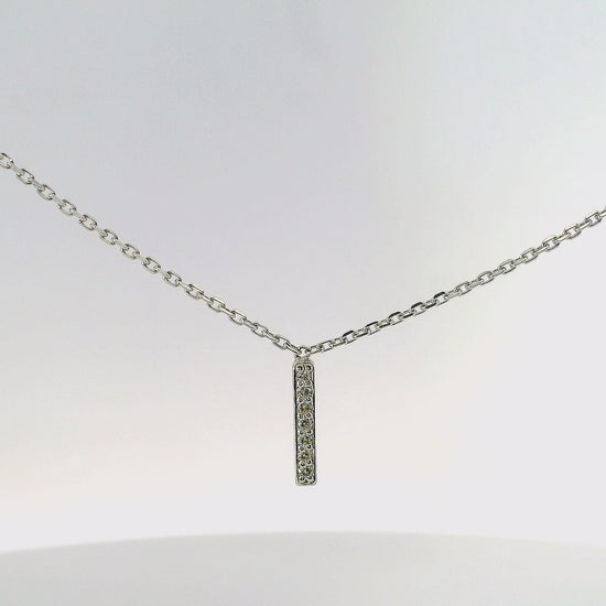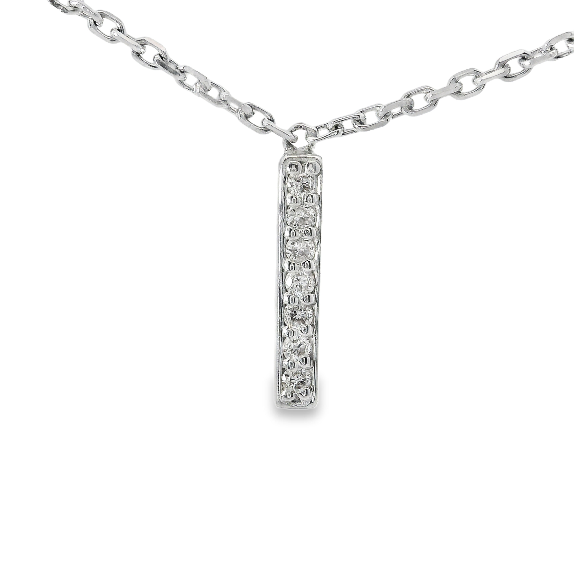 Crafted from high-quality 14k white gold, this elegant bar pendant features a stunning 0.17CT diamond. Add a touch of luxury to any outfit with this timeless piece, perfect for both special occasions and everyday wear. Elevate your style with this sophisticated and dazzling diamond pendant.