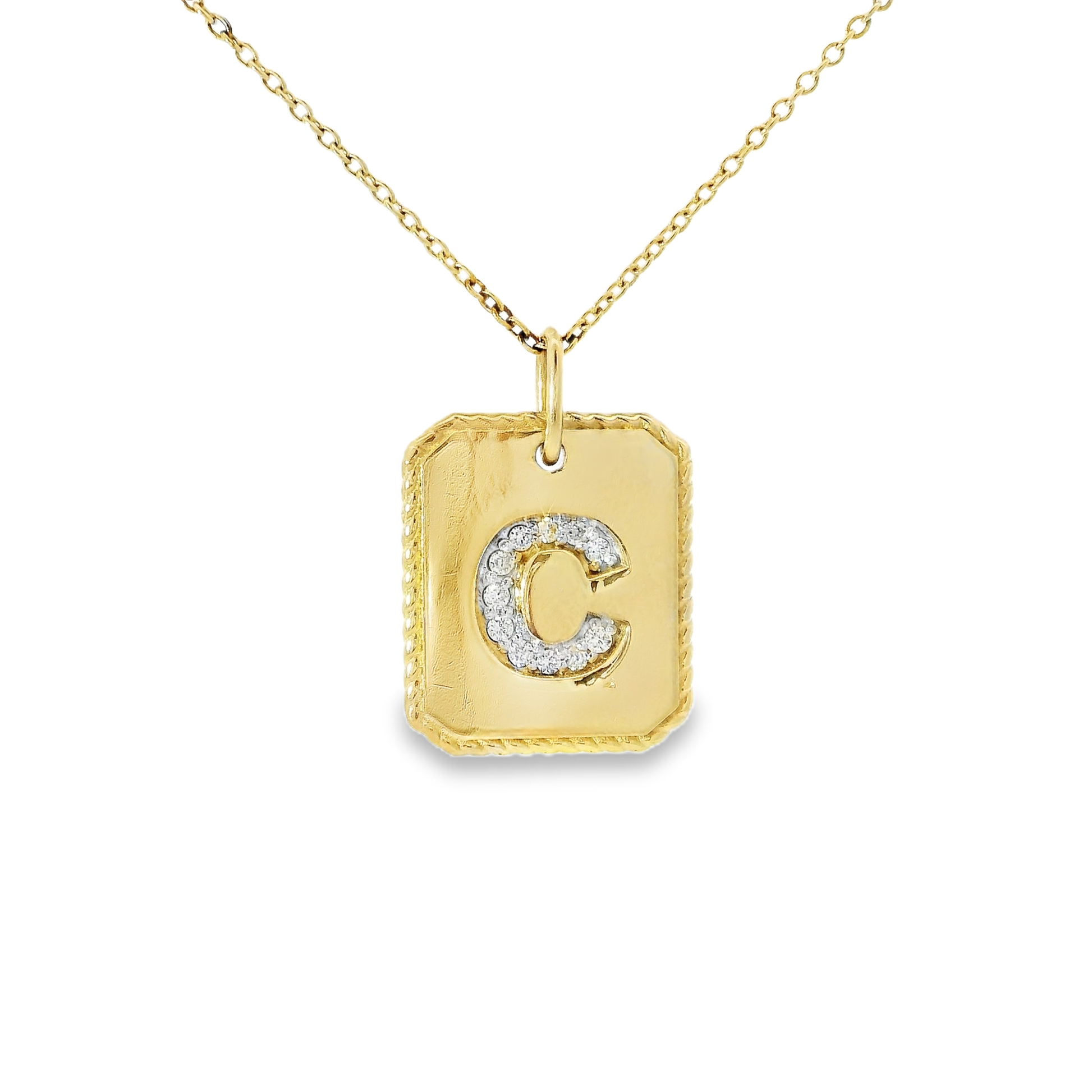 Enhance your style with this elegant 0.17CT diamond pendant featuring a letter C initial. Crafted with 14k yellow gold, this stunning pendant is perfect for any occasion. Show off your unique sense of fashion and add a touch of sparkle to your outfit with this timeless piece.